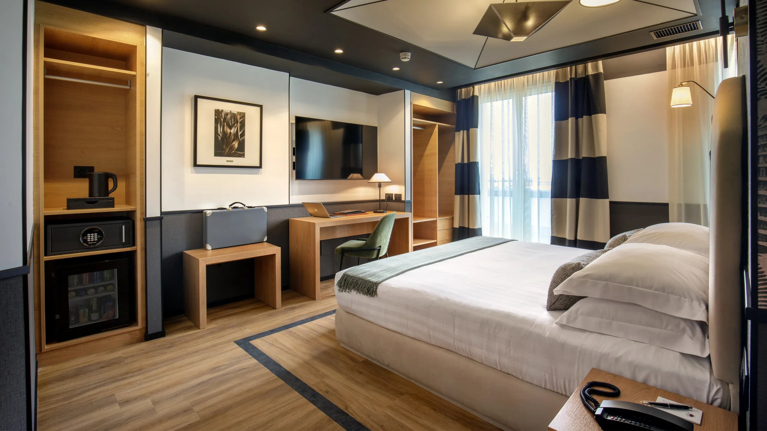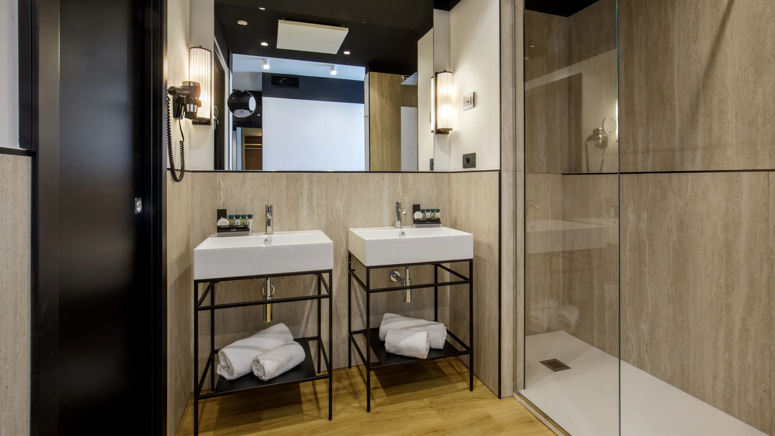 Ampio soggiorno con divani e zona relax – TV multimediale a schermo piatto 55’’ – Letto king-size con biancheria di pregio e cuscini soffici – Tende oscuranti per un riposo ottimale – Mini-bar assortito con selezione di prodotti premium (a pagamento) – Set di amenities Salvatore Ferragamo per la cura del corpo – Connessione Wi-Fi gratuita ad alta velocità – Aria condizionata e sistema di insonorizzazione – Cassaforte privata – Macchina da caffè con selezione di cialde e bollitore con tisane – Bagno privato elegante con doccia moderna e finiture raffinate – Asciugacapelli professionale e kit di cortesia completo – Servizio in camera disponibile – Possibilità di transfer e concierge su richiesta
